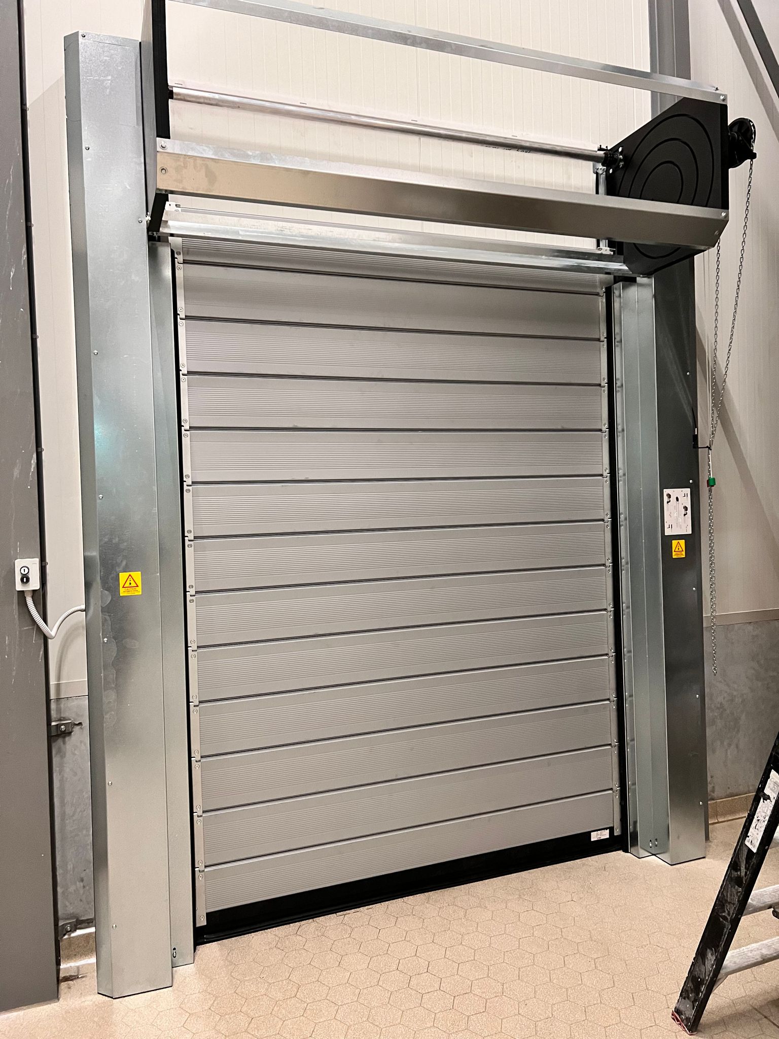 De spiraaldeur van Elzinga bedrijfsdeuren techniek is een geïsoleerde snelloopdeur voor in de buitengevel. De aluminium spiraaltechniek en hoogkwaliteitsafdichtingen zorgen voor een laag geluidsniveau en een solide loop door het geleidingssysteem. Samen met de geïsoleerde panelen levert dat uitstekende thermische waarden en een goede weerstand tegen windbelasting.